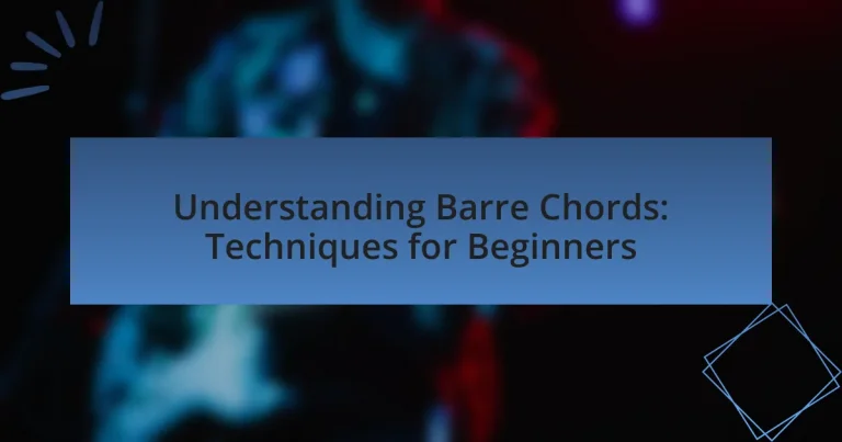 Barre chords are a fundamental guitar technique where one or more fingers press down multiple strings across a single fret, allowing for movable chord shapes. This article provides a comprehensive overview of barre chords, including their differences from open chords, basic techniques for playing, and their importance for guitarists. It also covers common types of barre chords, variations, and effective learning strategies for beginners, addressing challenges such as finger strength and positioning. Additionally, the article offers tips for practice, resources for learning, and best practices for integrating barre chords into playing, making it a valuable guide for novice guitarists seeking to enhance their skills.